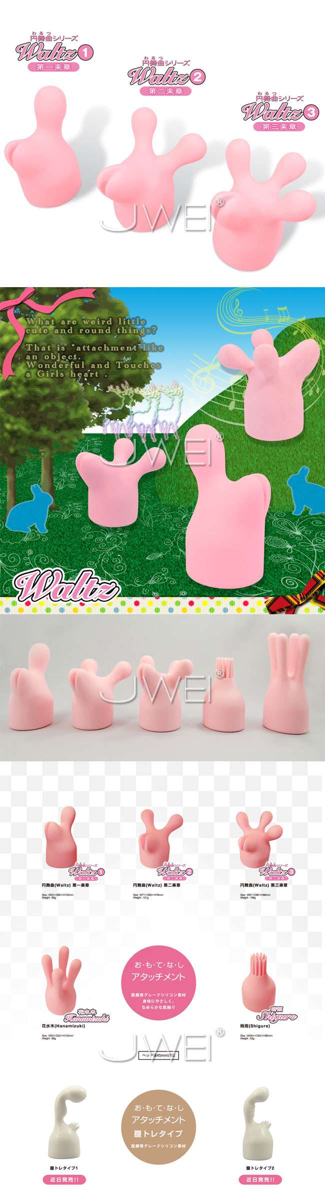 ヘッド径45mmのデンマに使えるアタッチメントシリーズ!第一楽章はツノ1本タイプ!懐かしく耳に響くのは、遠い異国の円舞曲(ワルツ)の調べ…アタッチメント『円舞曲シリーズ』第一~第三楽章、丸い突起を特徴とした個性的な造形に仕上げました。小動物を思わせるキュートで不思議な形状のアタッチメントです。 ■日本原裝進口,SSI出品。 ■H79×W71×D93mm ■重量:101g ■ヘッド径45mmのデンマにフィット。