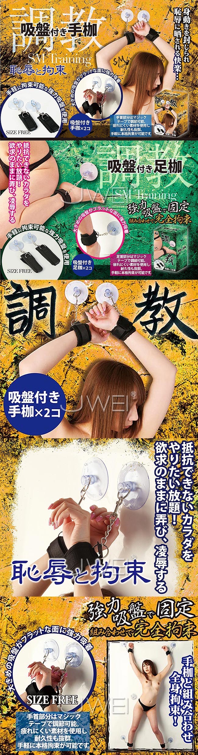 身動きを封じ、欲望のままに凌辱するSMの世界・・・。 初めて拘束プレイをする方でも直感的に使えるマジックテープ式だから、取付も取り外しもとっても簡単。手首の太さにピッタリと合わせることもできます。 平らな場所ならどこでも強力に貼り付けることが出来る大きめの吸盤が付いているので、お風呂場の壁や、部屋のフローリングなど色んな場所で拘束できます。 耐久性も抜群なので、しっかりと体重をかけても大丈夫! 手軽に本格的なSM拘束プレイを楽しめる人気のアイテムです。