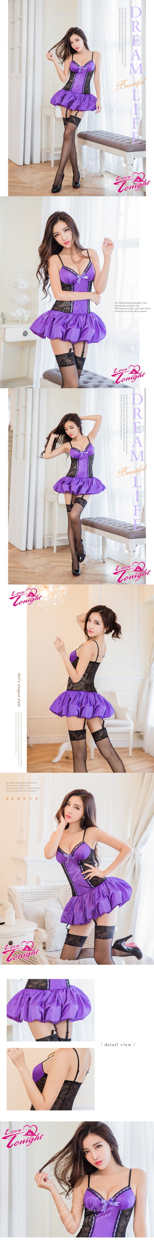 內容:馬甲式上衣x1+丁字褲x1+可拆可調式吊襪帶x1+貼心小禮-性感網襪一雙