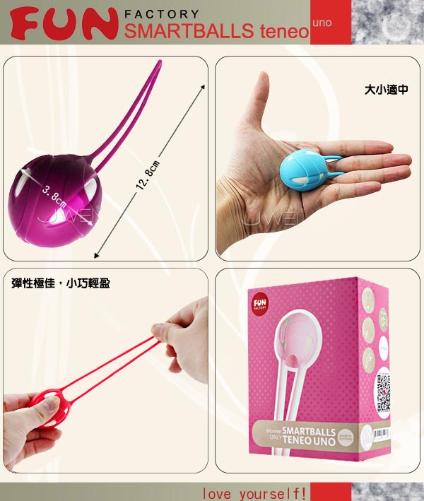 聰明球球是FUN FACTORY 德國愛情遊樂工廠的原創玩具,並且榮獲多項專利肯定。球體內包覆著可滾動的金屬小球。把聰明球球放置在陰道中,你身體的每一個動作如散步、奔跑、跳舞等等,聰明球球內的金屬小球也都會隨之跳動,帶來令人心癢難耐且心裡小鹿亂撞的挑逗和刺激。不僅如此,陰道骨盆底的肌肉也會因此被刺激和按摩,而且被鍛練的更為強韌。