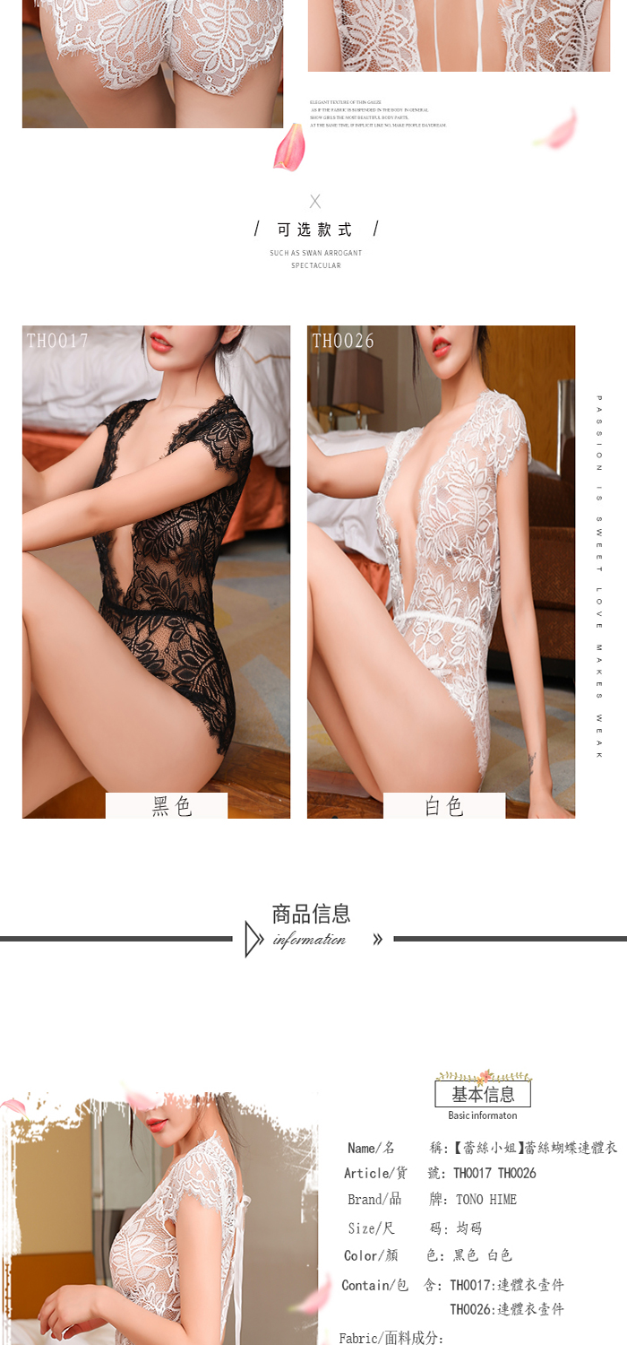 ►您現在的位置:首頁>TONO HIME【蕾絲小姐】蕾絲蝴蝶連體衣(黑)