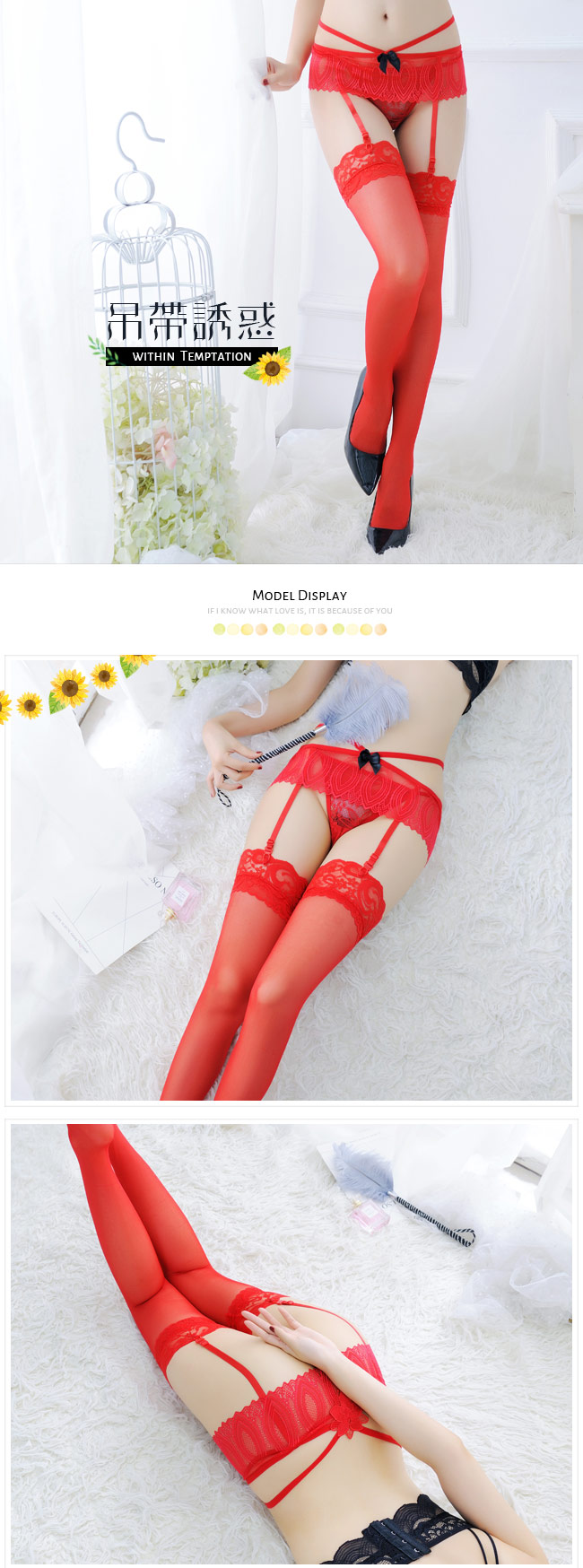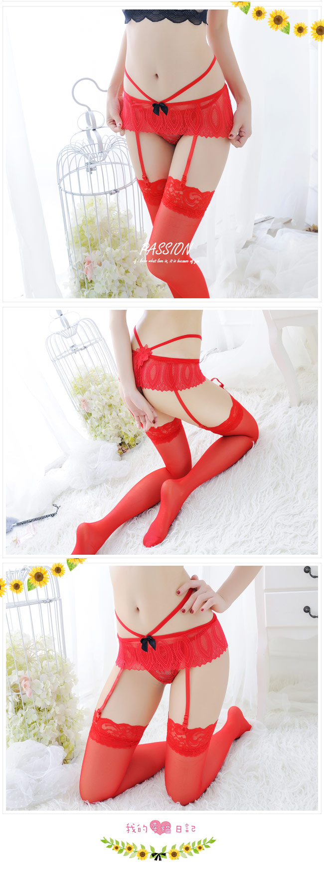 ◆內容物:吊襪帶x1+丁字褲x1+大腿絲襪x1