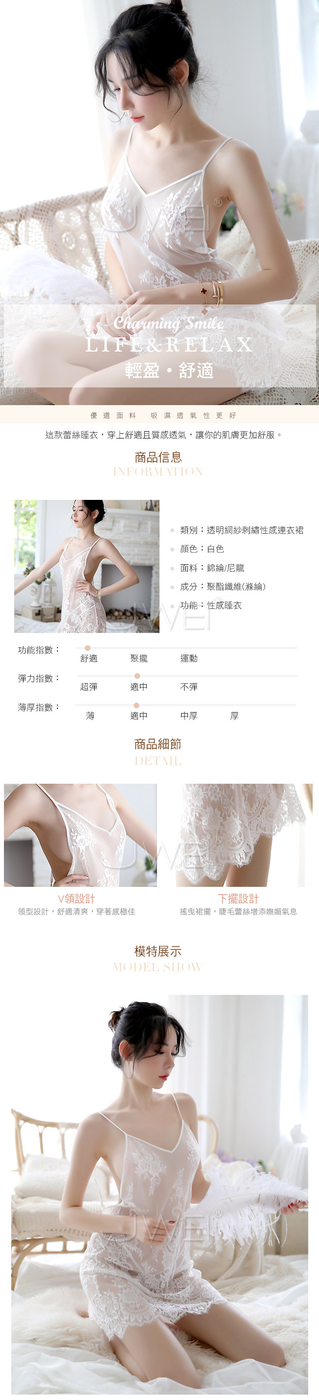 性感透視網紗刺繡,使身材若隱若現,