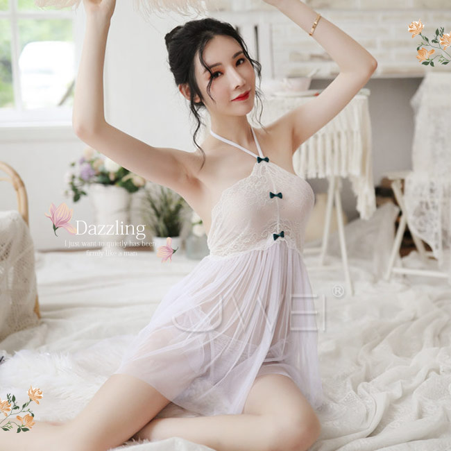 ◇◆愛戀花漾.唯美掛脖透視吊帶蕾絲睡衣◆◇