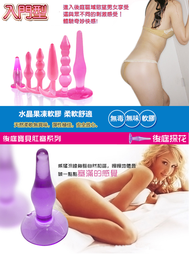 ►您現在的位置:首頁>Anal plug 享樂B套裝 - 水晶果凍軟膠 六件後庭肛門塞組﹝紫﹞初級入門型
