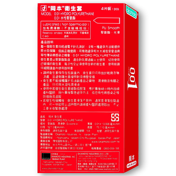 ►您現在的位置:首頁>Okamoto 日本岡本-0.01 至尊勁薄保險套 4片裝