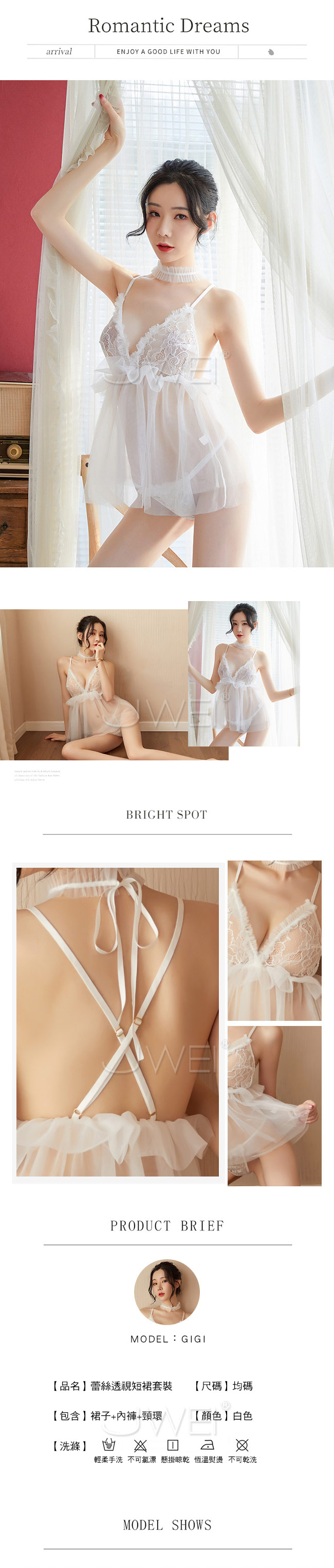 ◇◆專屬佔有.透視網紗蕾絲吊帶睡裙三件組◆◇