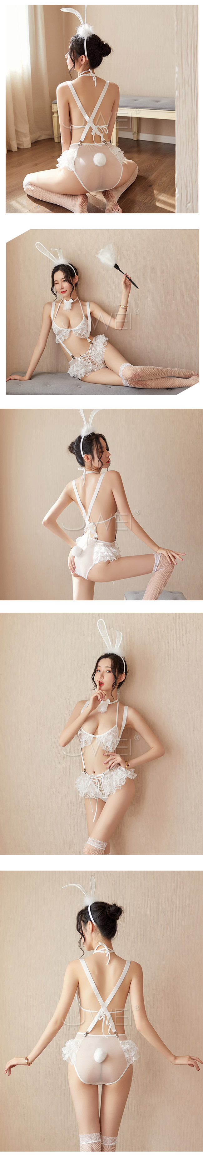◇◆華麗焦點.激情蕾絲三點式兔女郎套裝五件組(白色)◆◇