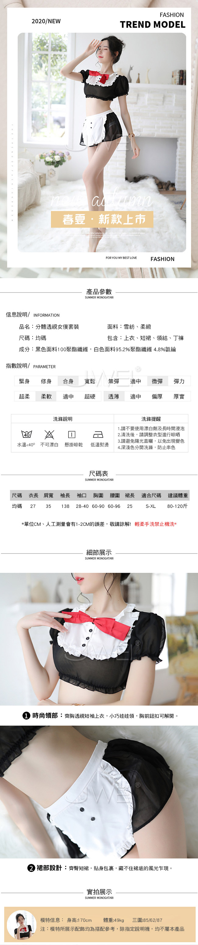 ■商品內容:上衣x1、短裙x1、領結x1、丁褲x1
