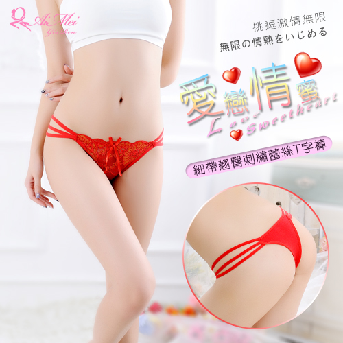 | 擁入懷抱.低腰刺繡網紗雙帶丁字褲(黑色)
