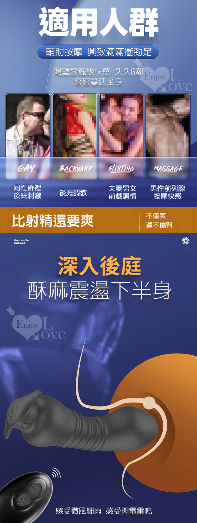 ►您現在的位置:首頁>後庭P潮 ‧ 無線遙控前列腺肛塞按摩棒﹝10頻震動+兩種操控+親膚硅膠+USB充電﹞