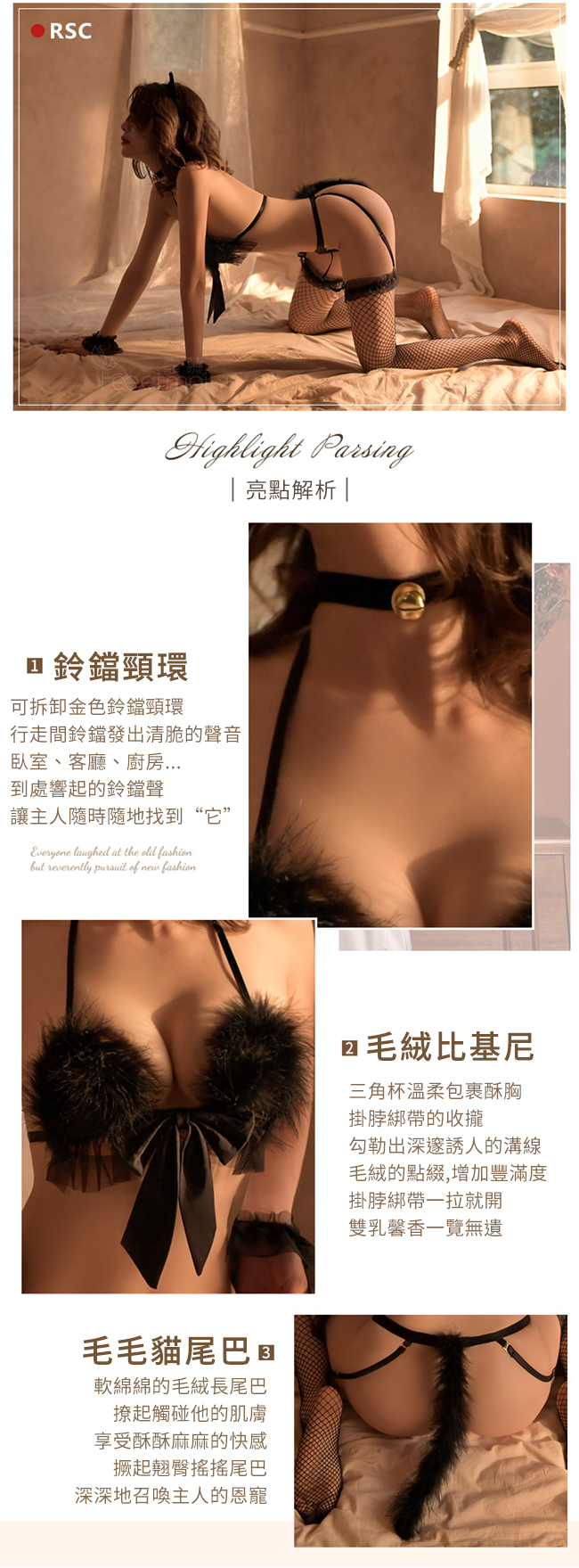 ►您現在的位置:首頁>貓咪角色扮演服!鈴鐺頸環毛絨露臀開襠六件式套裝 - 含可拆吊襪帶