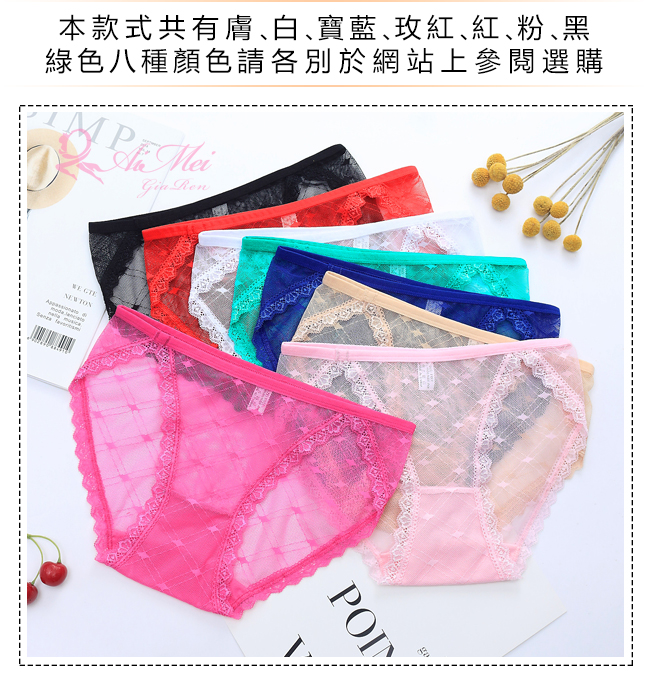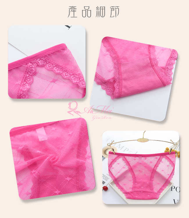 ►您現在的位置:首頁>愛戀滋味!菱格紋網紗蕾絲滾邊三角褲﹝膚﹞