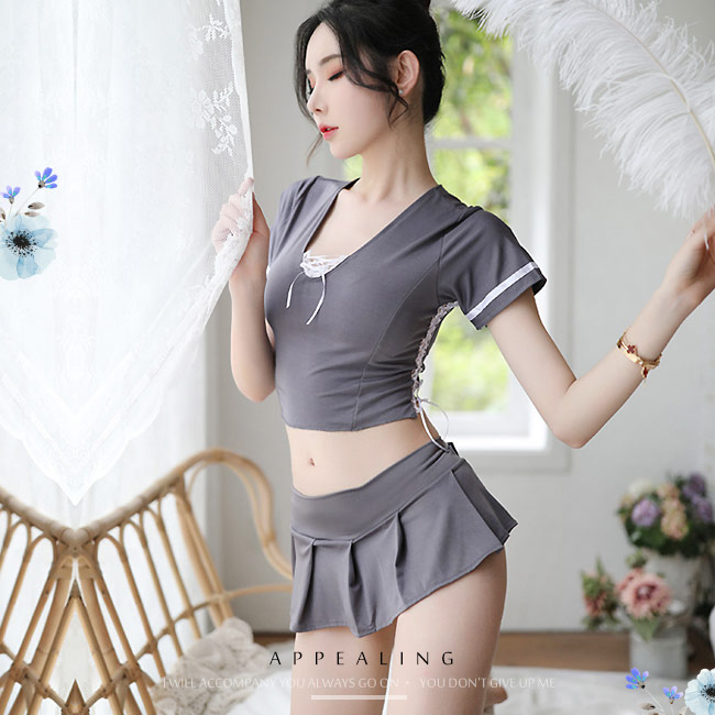 | 逮捕時間.分體式火辣鏤空女警套裝三件組