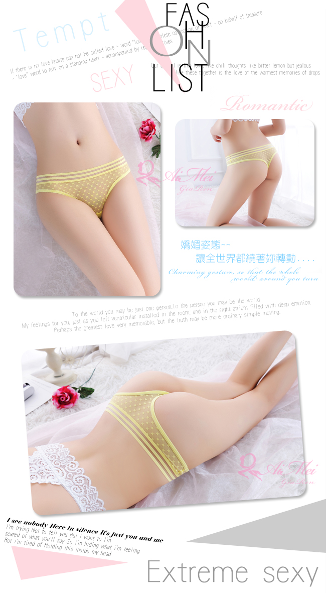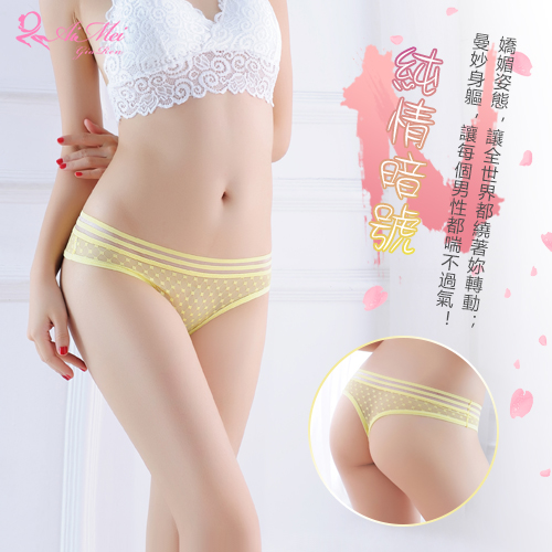 純情暗號!薄透方塊圖樣柔紗T字褲﹝黃﹞