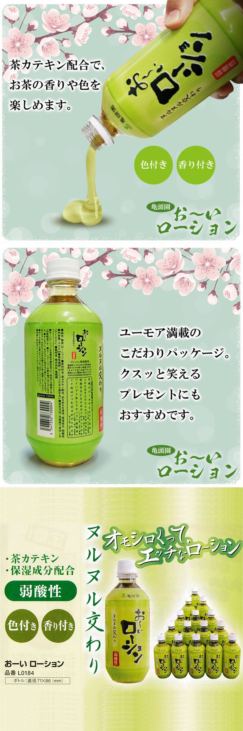 | 日本原裝進口龜頭園弱酸性綠茶風味水溶性潤滑液500ml