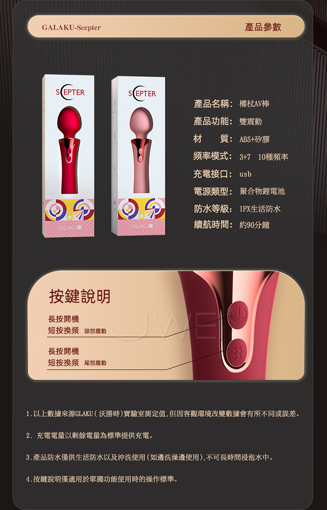 權杖AV棒,外表輕奢,內修多技,10 頻爆震;柔軟膚感,如肌膚般觸感;多層降噪,一體成型+微米級密 封科技;入體爆震,頂撞G點、入體爆震,頂撞G點,酥麻快感;智 慧體感恆溫,溫暖入體,和真人一樣的觸感;雙擎高速馬達,瞬發高 潮的秘密。