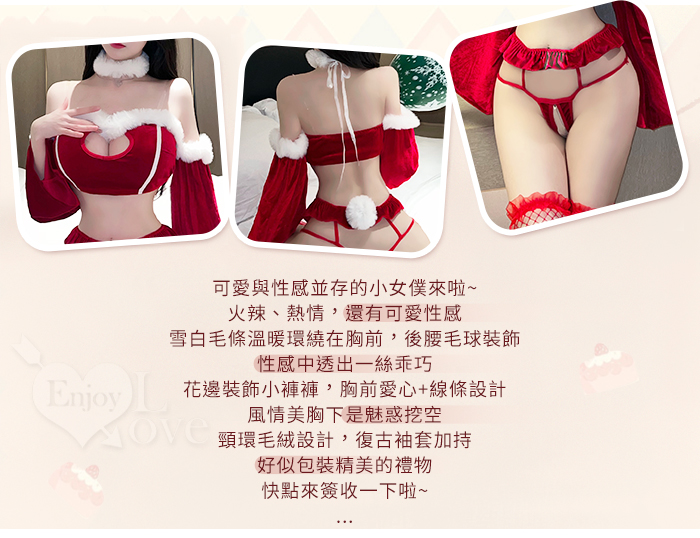 | 女僕角色扮演服!復古絲絨毛毛邊挖空露溝開襠免脫四件式套裝﹝紅﹞