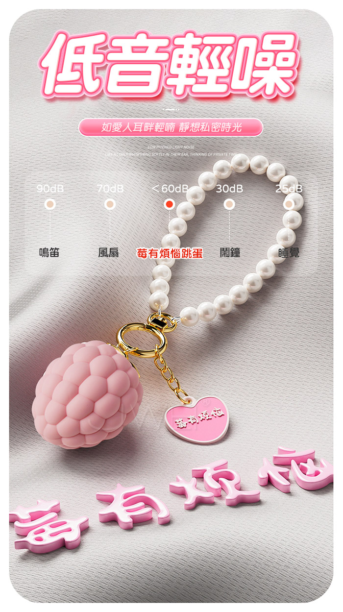 "莓"有煩惱飾品跳蛋,精緻可愛完美隱藏,隨身攜帶隨處可用;多重刺激 玩法,酥酥麻麻,探索更多樂趣,刺激乳尖,預熱身體,快速進入狀態; 全身游走,喚起濕意,刺激蜜豆,身體開始震顫;柔軟親膚矽膠,精選材 質暢玩更安心!~
