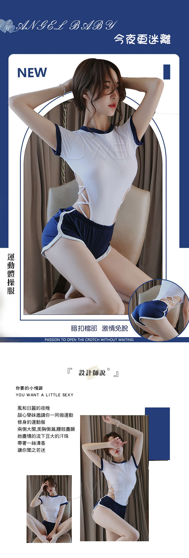 修身的運動服,兩側大開,美胸側漏,