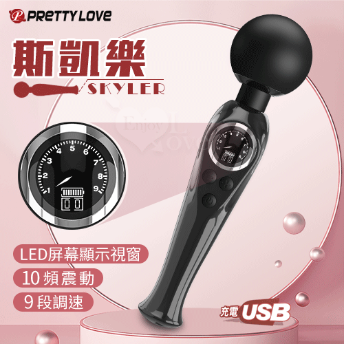 派蒂菈 ‧ SKYLER 斯凱樂 LED顯示10變頻X9段調速強震矽膠大頭AV棒 - 黝黑 (輕鬆GET敏感地帶 )