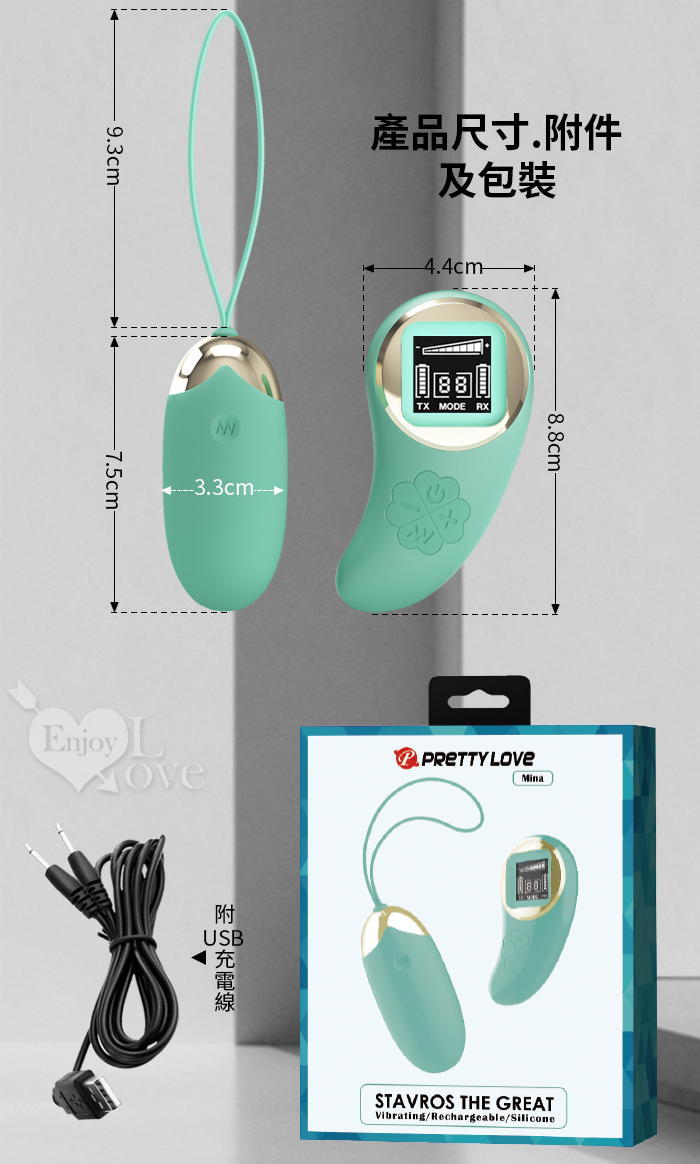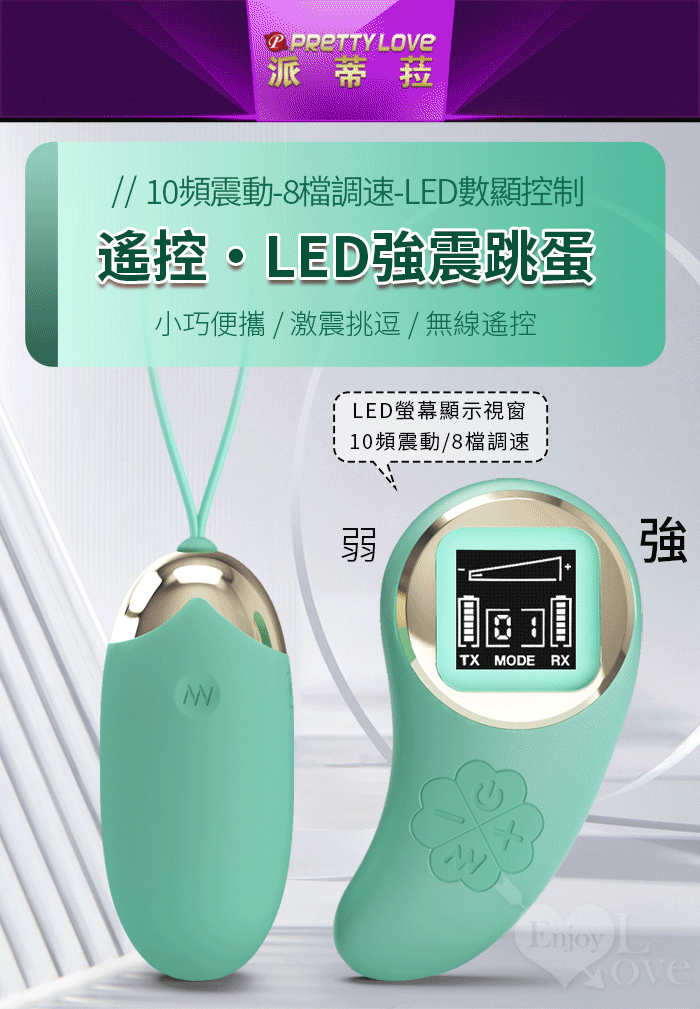 ►您現在的位置:首頁>派蒂菈 ‧ Mina 米娜 無線遙控LED顯示10頻X8速強震跳蛋-可入體式操控/40公尺長距操控﹝湖水綠﹞