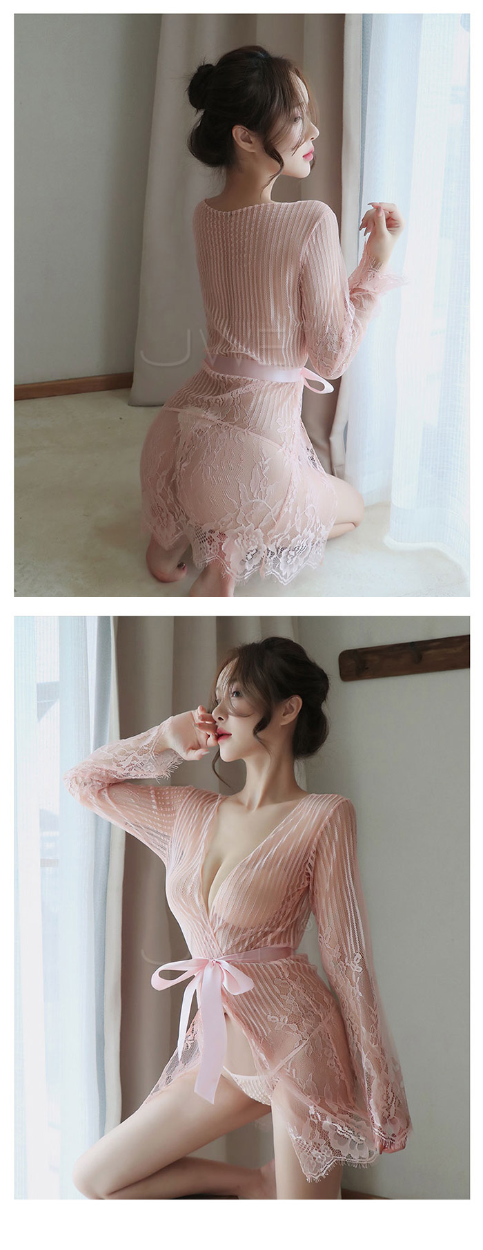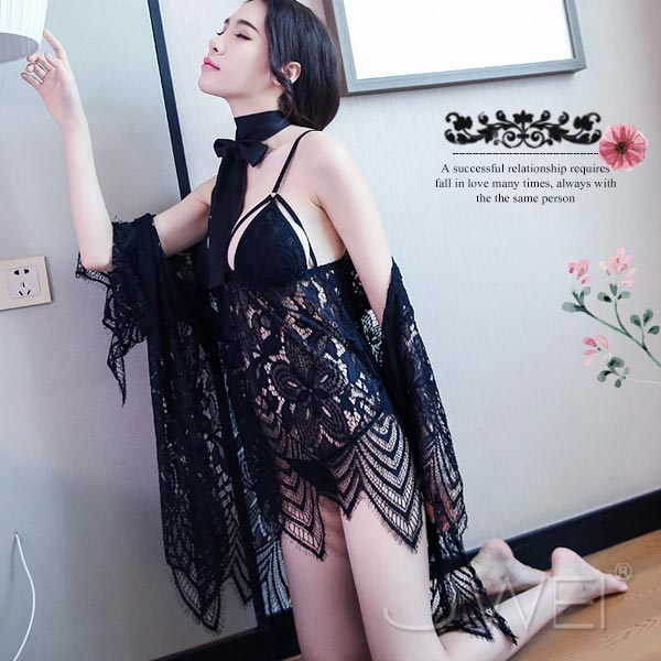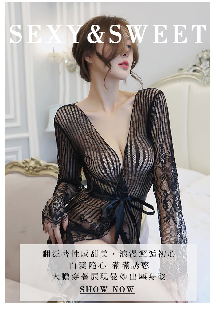 ►您現在的位置:首頁>情夜悸動.光滑蕾絲網紗性感透膚宮廷綁帶睡袍(白色)