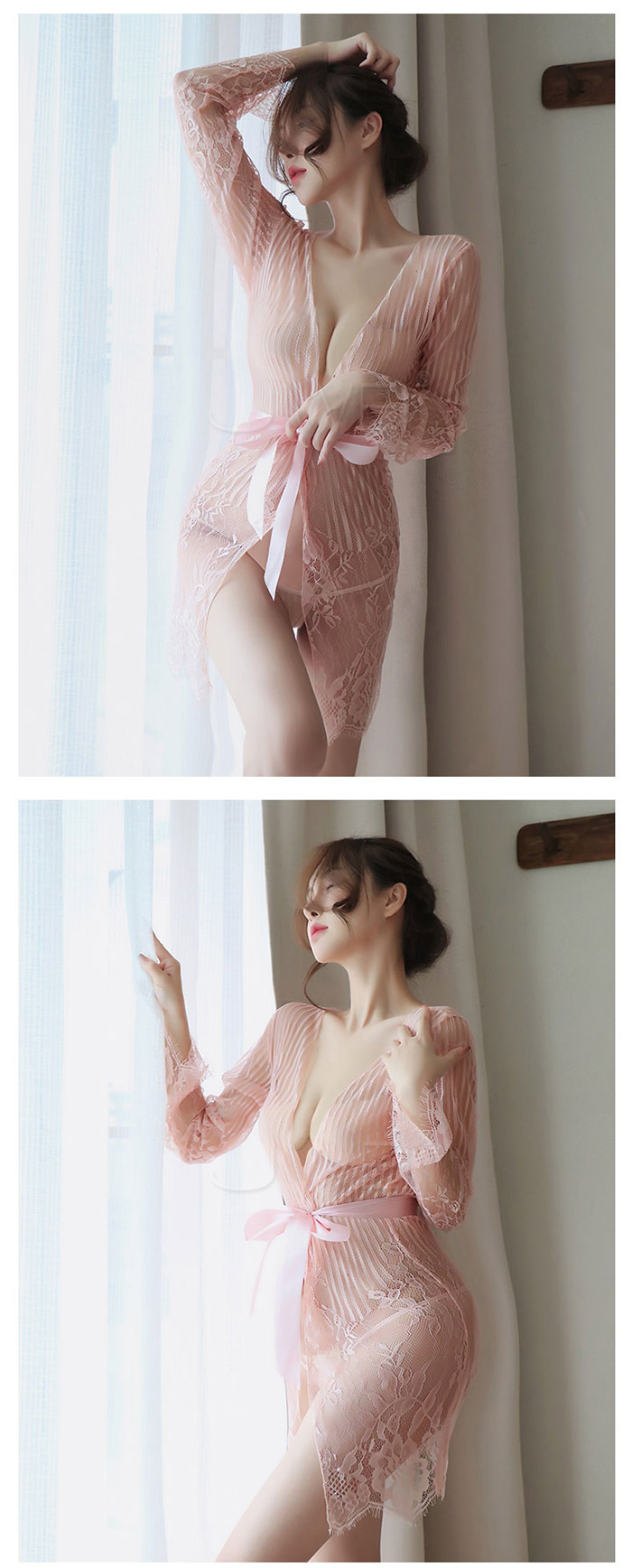 ►您現在的位置:首頁>情夜悸動.光滑蕾絲網紗性感透膚宮廷綁帶睡袍(膚色)