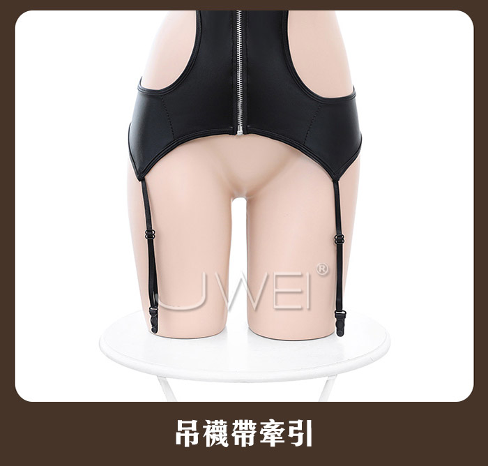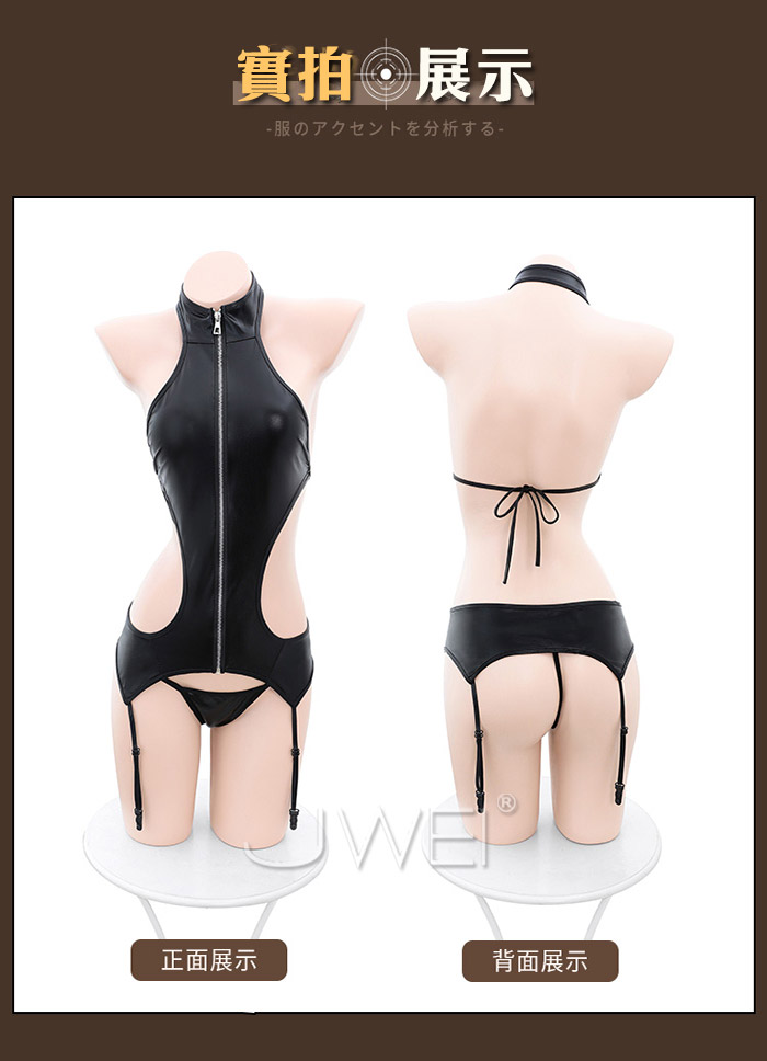 火辣特工.辣妹露背吊襪帶拉鍊皮衣