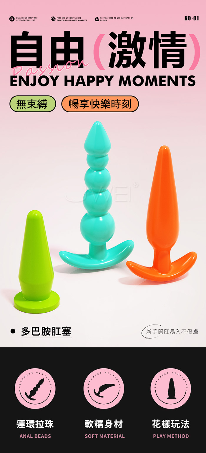 多巴肛塞,繽紛的顏色,超級可愛的後庭塞,適合初級玩家使用,