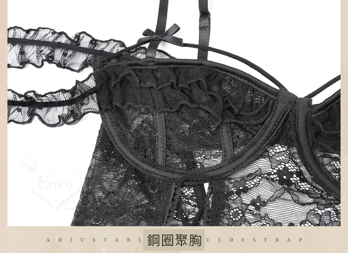 ►您現在的位置:首頁>情趣睡衣!法式浪漫花卉蕾絲雙層網紗開襠露臀裝三件組﹝黑﹞