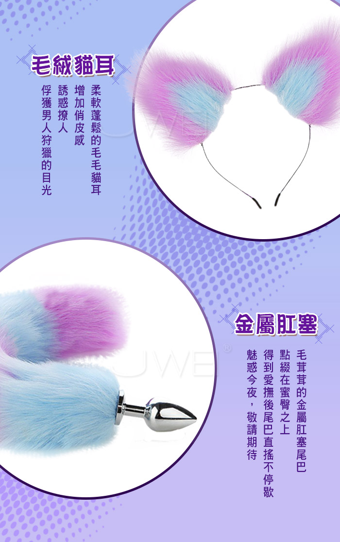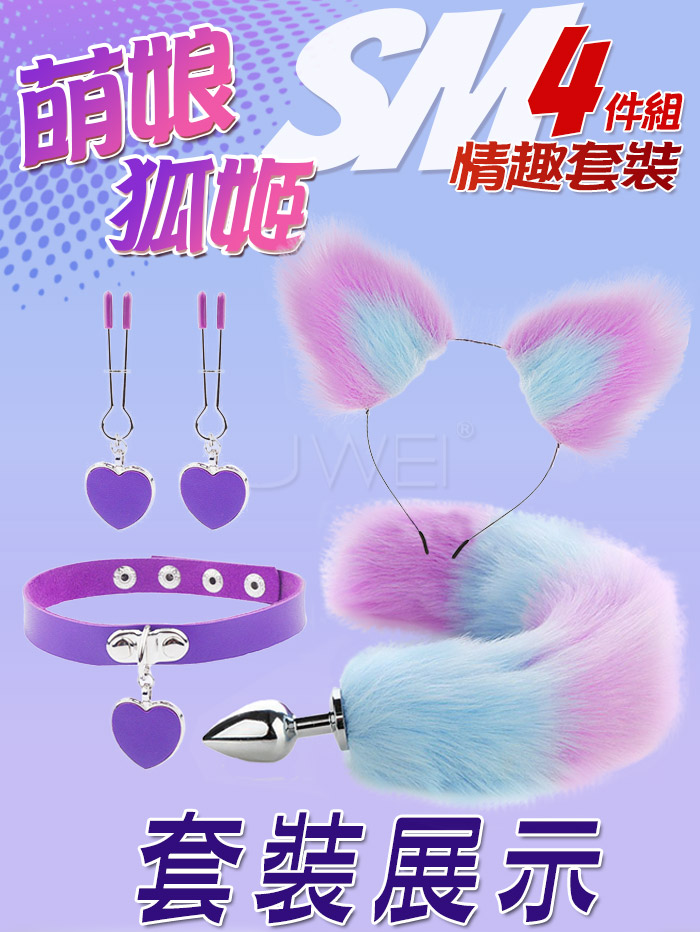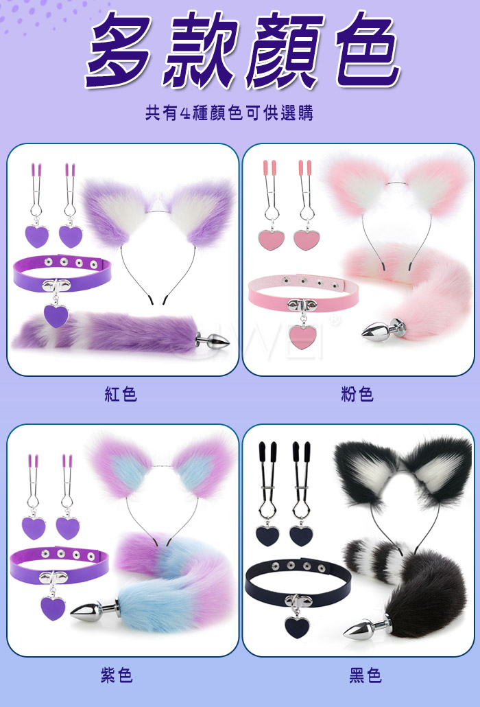 | 萌娘狐姬.裝扮遊戲4件套組﹝狐狸尾巴+毛絨髮箍+愛心頸圈+愛心乳夾﹞藍紫
