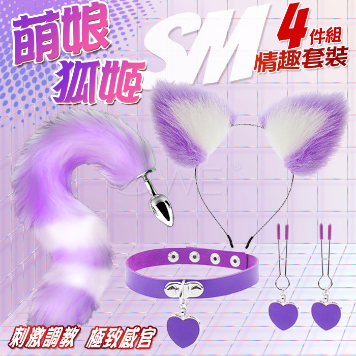 | 萌娘狐姬.裝扮遊戲4件套組﹝狐狸尾巴+毛絨髮箍+愛心頸圈+愛心乳夾﹞紫色