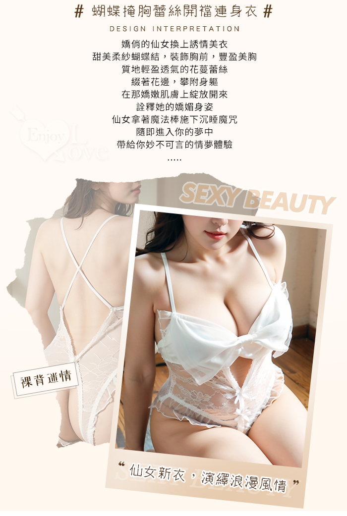 【棉花糖女孩】大尺碼狂野連身衣!花蔓蕾絲蝴蝶結飾胸交叉裸背惹火美臀開襠裝