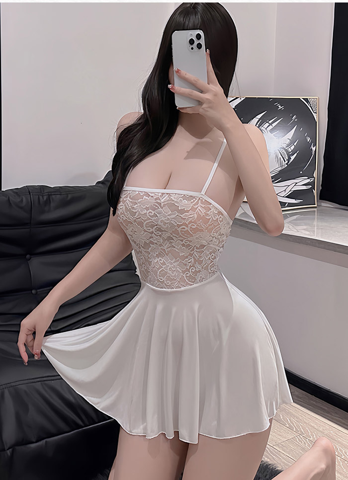 ►您現在的位置:首頁>窕窈熟女.吊帶蕾絲誘惑連衣裙-白