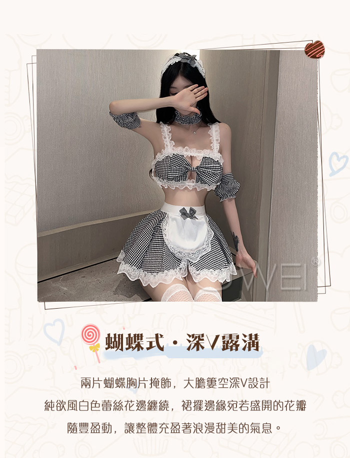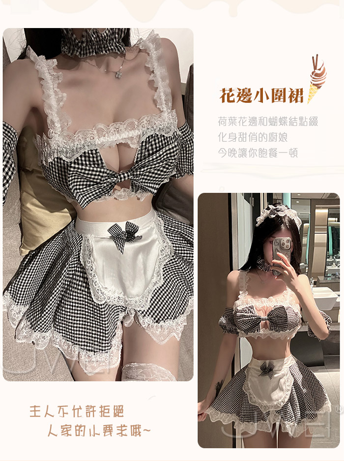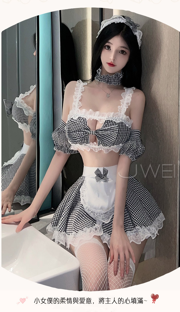 | 性感禦姐.火辣角色扮演 女傭制服格子套裝-黑格