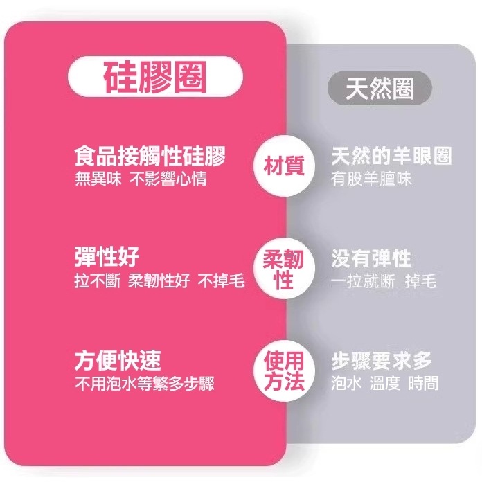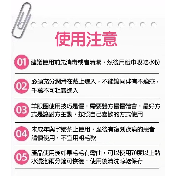 使用注意:使用時要戴入或取出時,請不要去抓毛的地方去拉,毛在多也被你扯光的要拉硅膠圈才行!