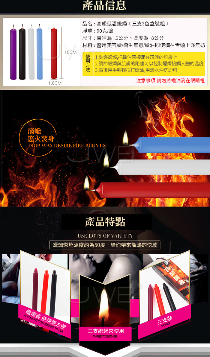 低溫蠟燭,低溫燃燒、盡享刺激,火光明亮 無煙,照亮性福的愛愛之旅, 安心使用不傷身體。