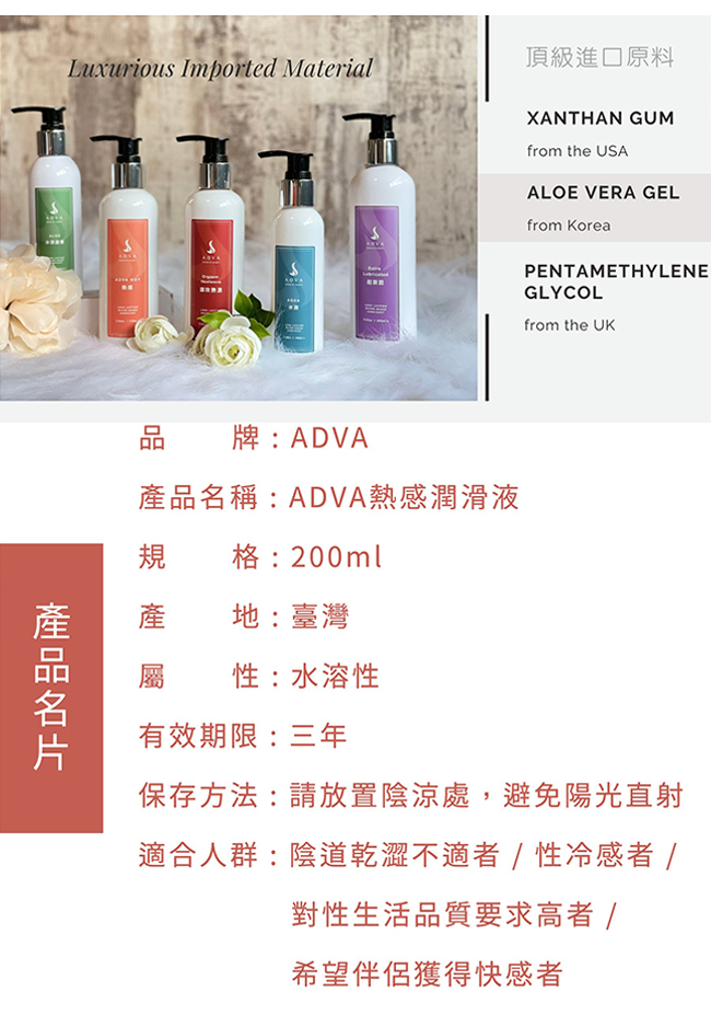 台灣製造 ADVA.HOT 熱感潤滑液 200ml