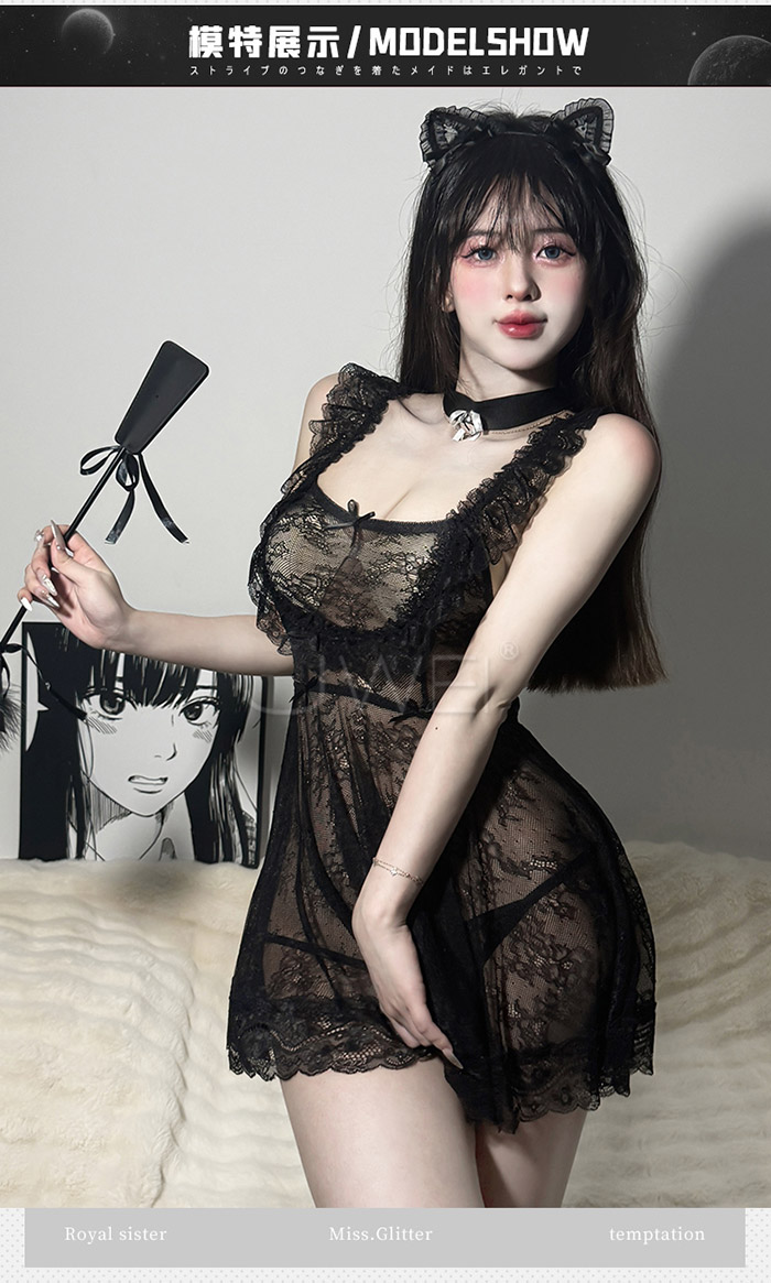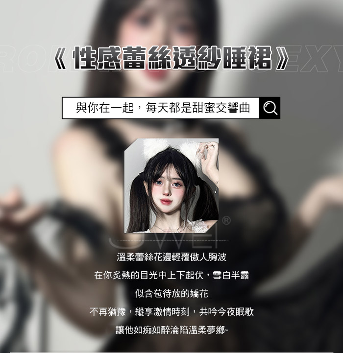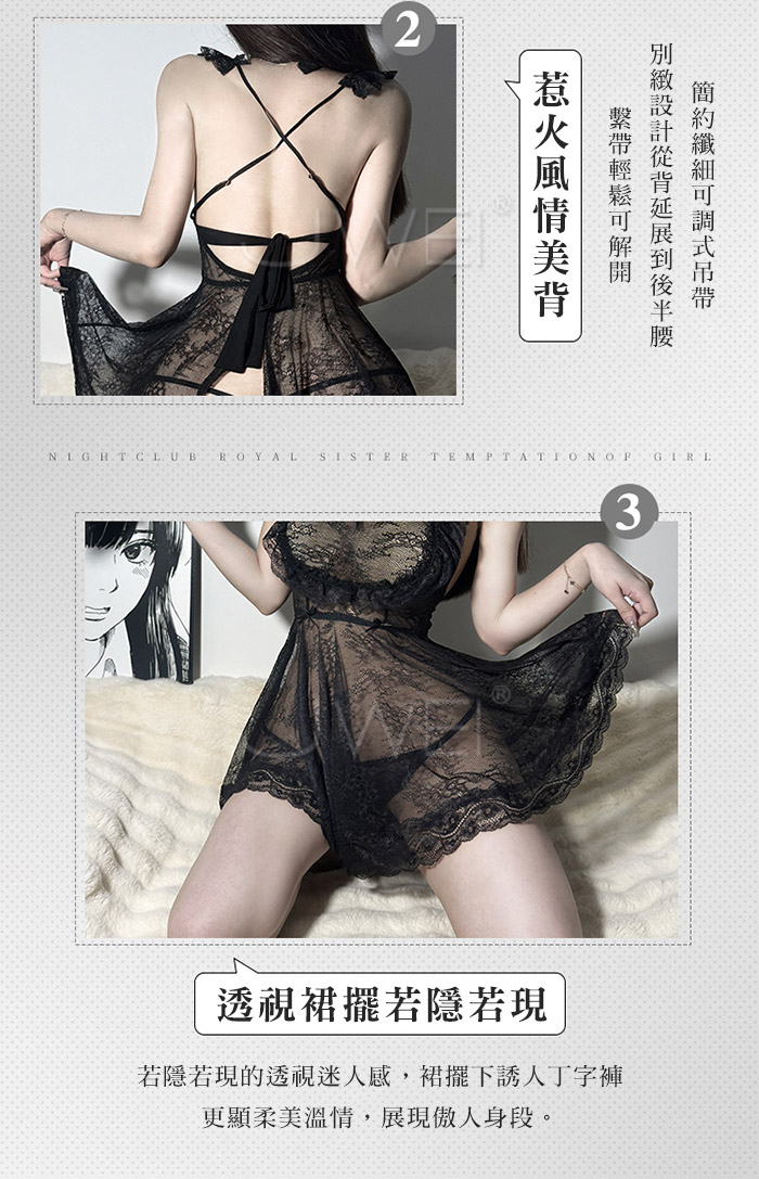 ►您現在的位置:首頁>朦朧夜香.性感純欲蕾絲誘惑免脫可吃奶透視睡衣-黑色