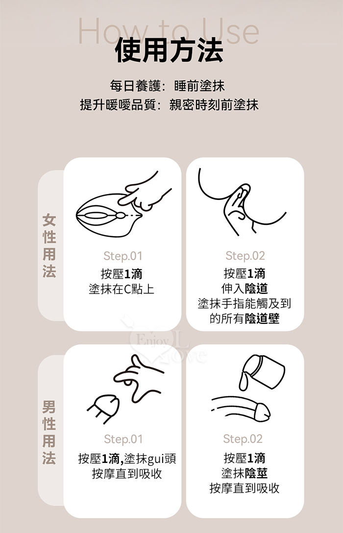 • 日常和即時都可以使用,日常修護,讓神經越來越敏感;即時使用,快速享受快感
