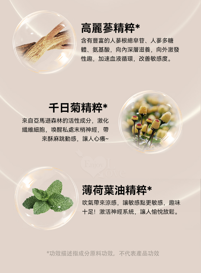 • 感受:涼感,熱感交替,同時酥麻跳動感,效果加持