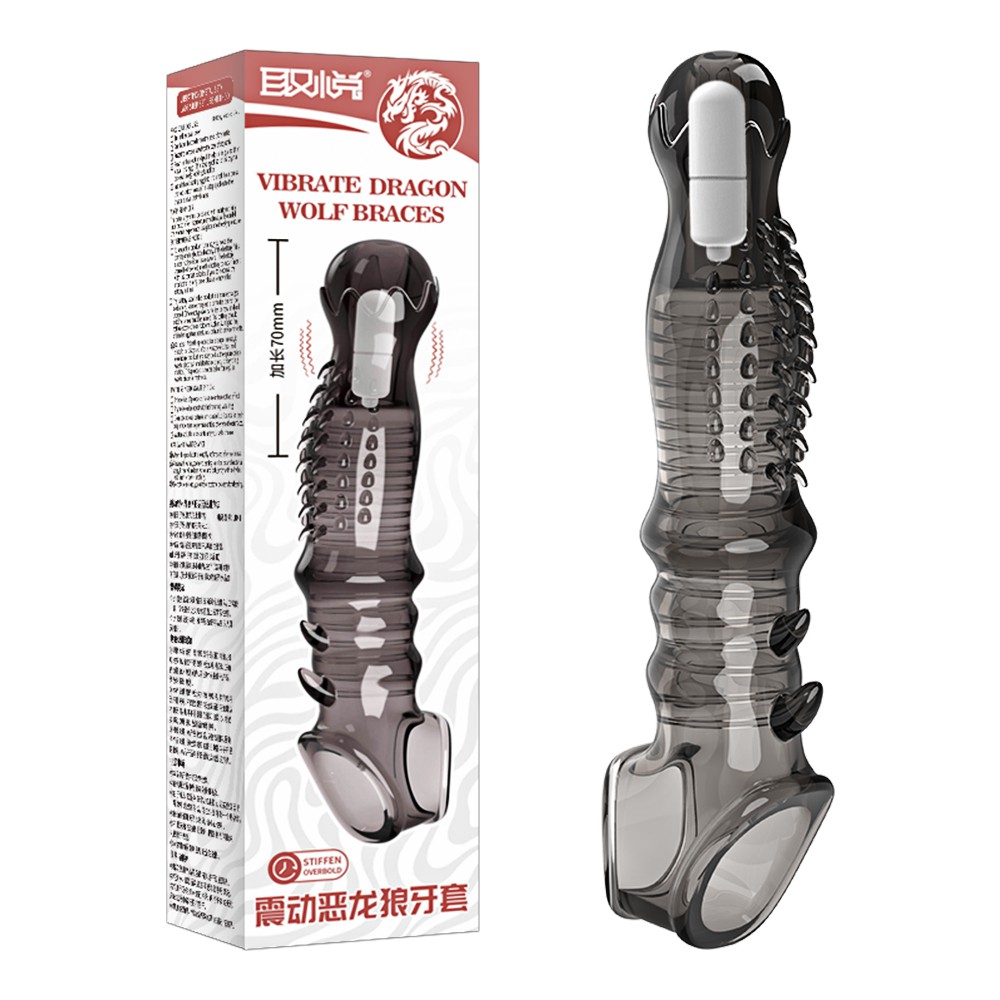 取悅 惡龍震動加長狼牙套-透黑
