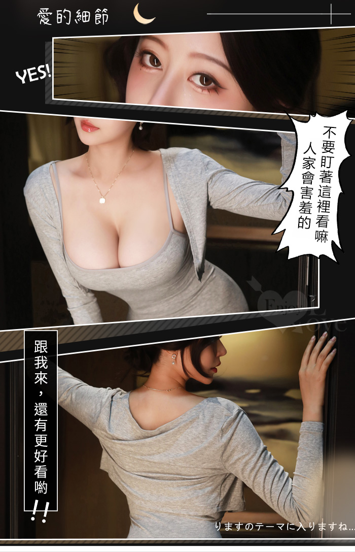 ►您現在的位置:首頁>情趣睡衣!火辣露胸短版外罩衫細肩帶及膝長裙兩件組﹝灰﹞