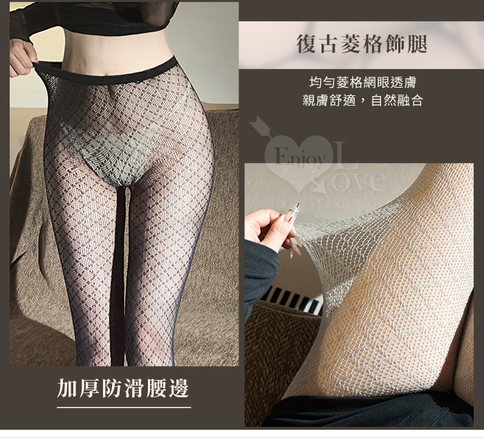 復古菱格細膩網眼透膚誘惑高腰連褲網襪﹝黑﹞