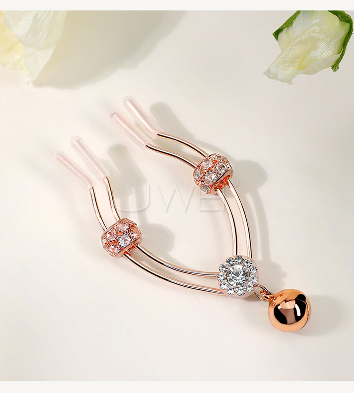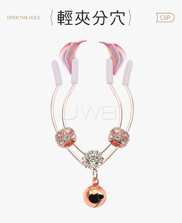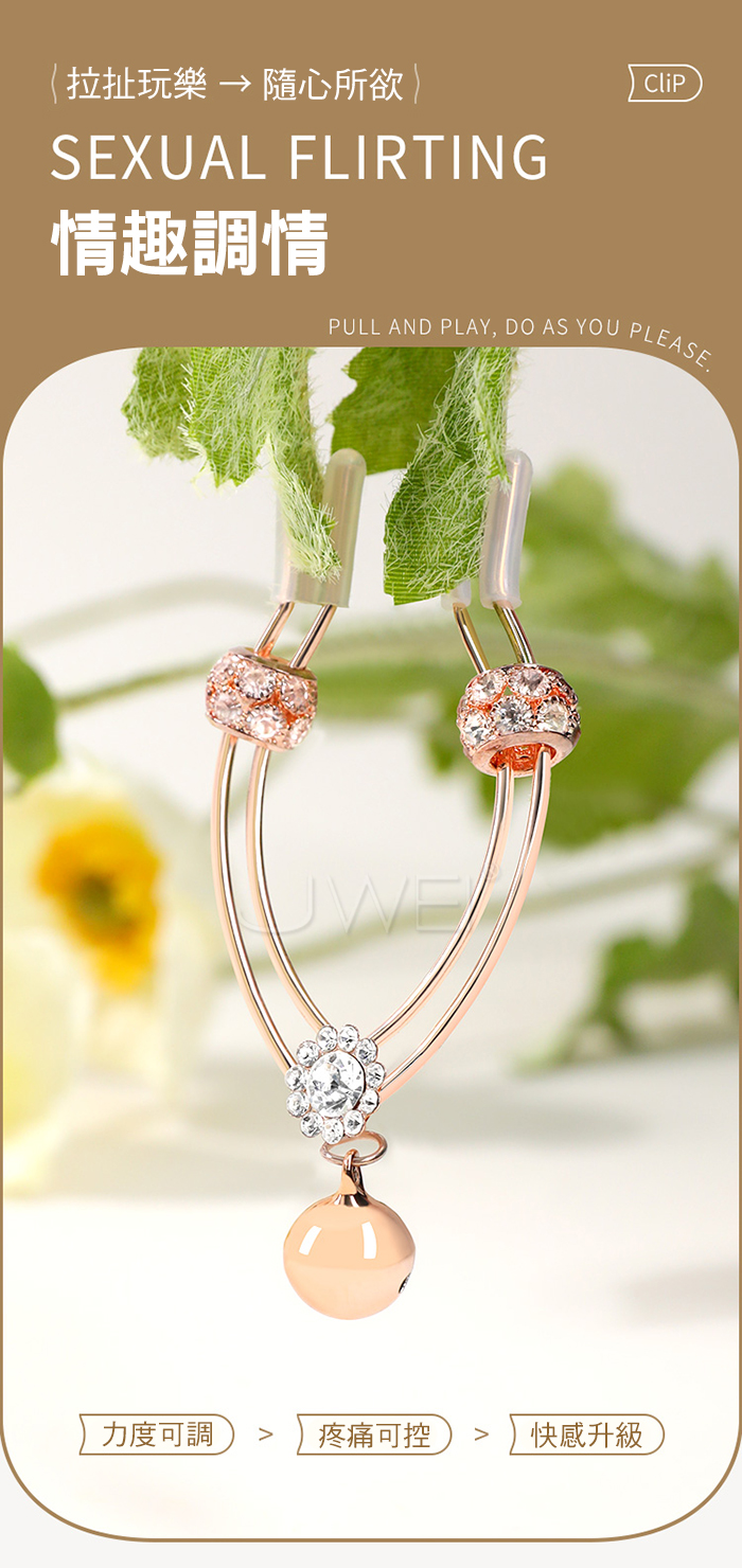 SM閨房情趣.輕夾分穴牽引互動 鈴鐺唇瓣陰夾 (玫瑰金)