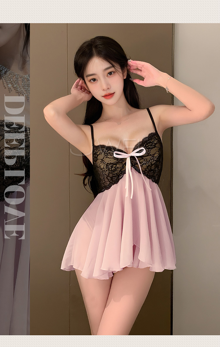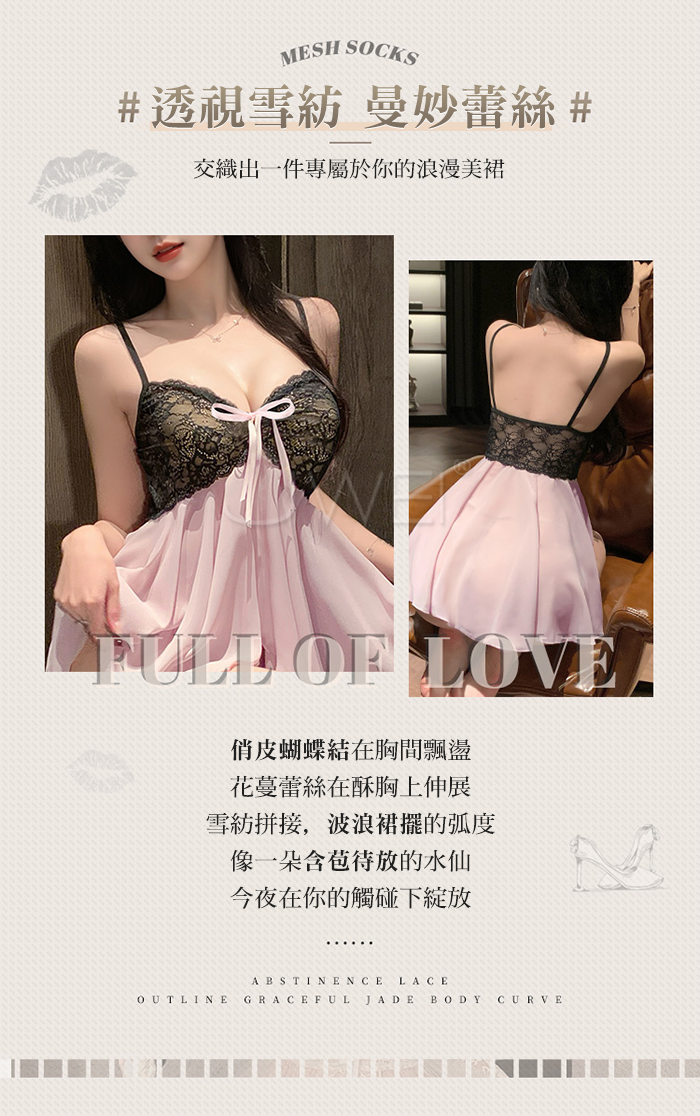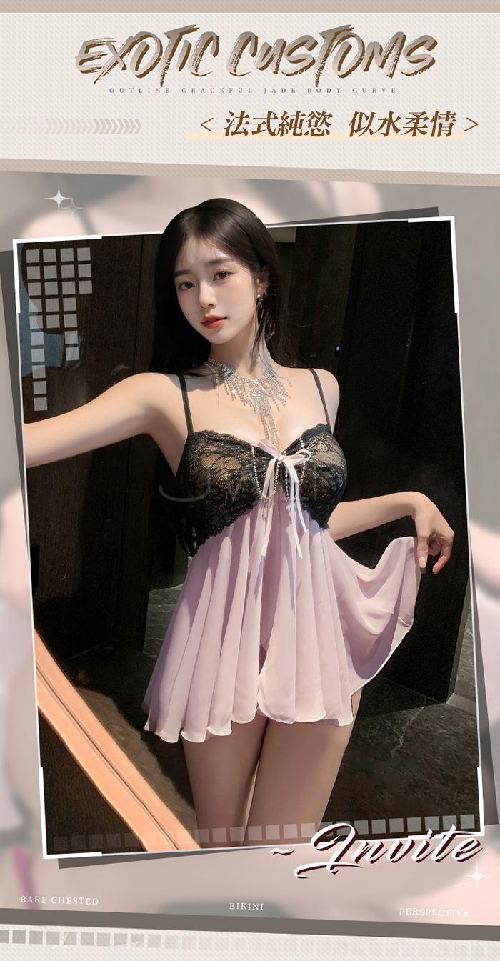 ►您現在的位置:首頁>黑蕾桃桃.法式純欲私房蕾絲花蔓透視雪紡睡裙 【睡裙+T褲】