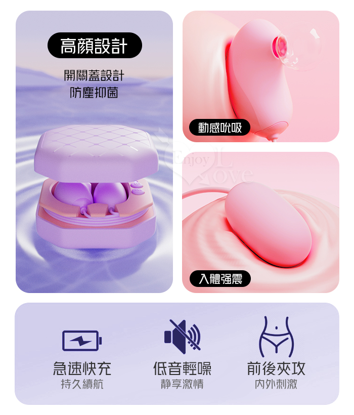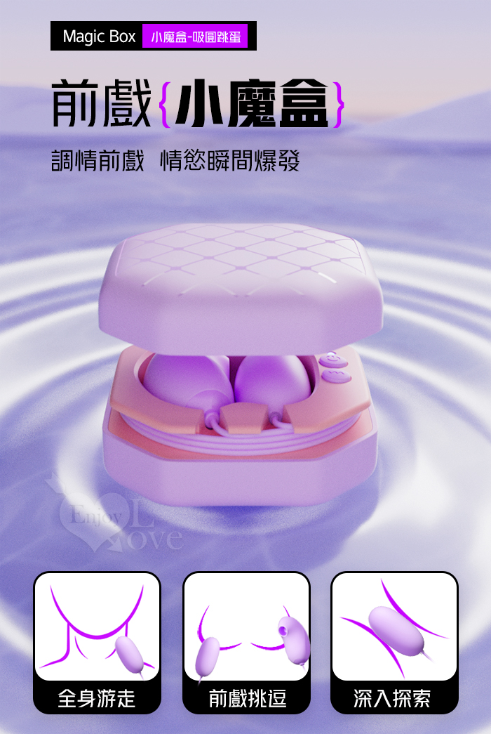 ►您現在的位置:首頁>ROSELEX 勞樂斯 ‧ 小魔盒 10段變頻吸吮+震動 精美隱密盒裝圓吸組合雙蛋﹝內外同潮+可獨立控制﹞紫