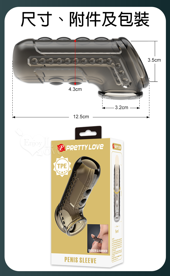 | 派蒂菈 ‧ Farrell 法雷爾 3開口精子發射台 老二增粗束精延時助性水晶加強套﹝透明黑﹞