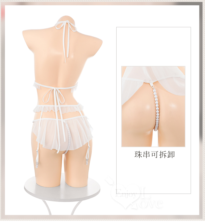 | 「法式透紗」蕾絲比基尼 × 花邊吊襪帶 × 串珠丁字褲 夢幻四件式套裝